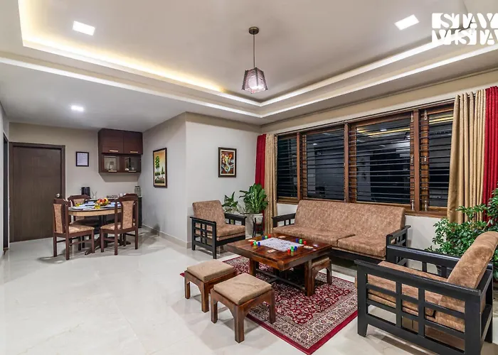 Вилла Stayvista At Mimani Retreat с видом на горы расположена в 5 минутах езды от цветочного выставочного центра. В комнатах доступна зона отдыха, телевизор с плоским экраном и спутниковыми каналами, а также оснащённая всем необходимым кухня.